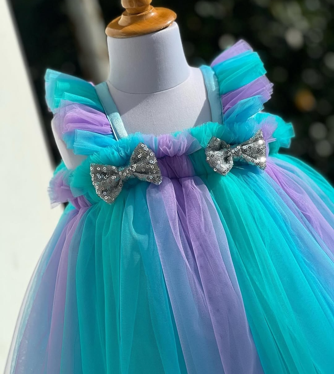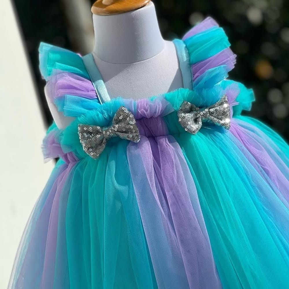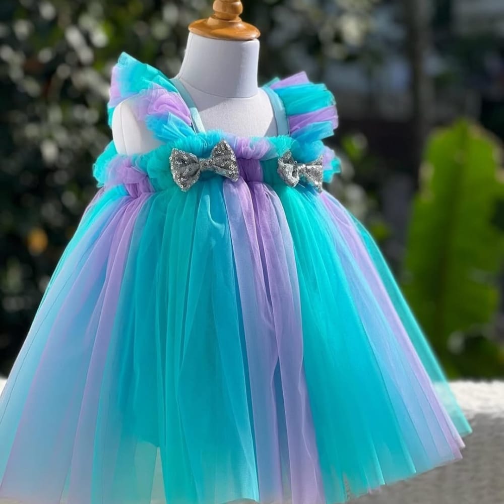Let your little one shine in this charming multi-colour net frock, designed to bring joy and comfort together in one delightful outfit. Crafted with soft, breathable fabrics and layered with lightweight net, this frock is perfect for birthdays, parties, photoshoots, or any special occasion.