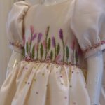 Make every special occasion unforgettable with this exquisite long silk hand-embellished gown for girls. Crafted from the finest, lustrous silk, this gown flows gracefully with every step, offering a luxurious look and feel. The bodice features intricate hand-done embellishments, including delicate beadwork, shimmering sequins, and subtle embroidery, all meticulously placed to create a timeless and elegant design.