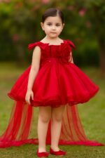 Turn every occasion into a fairytale moment with this luxurious red princess dress, designed especially for little girls who love to shine. Crafted with care and elegance, this dress blends festive charm with timeless style, perfect for birthdays, weddings, and special celebrations.